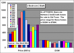 I’ve been keeping track of Old Town sales since 2000. The graphs shown here are for single family homes that are mostly west of White St., The Meadows, Old Town, Truman Annex and Casa Marina areas but not Sunset Key. These seven home types contain just those bed/bath combinations that have enough sales to provide a credible trend over time. This is the activity in Old Town thru June 30, 2012 and is a continuation of a silimar Blog written for 1st Qtr 2012.