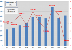 - The average Sold price per sqft. of $885 is up 16% over 2019 and is the highest recorded for 3/3 homes.