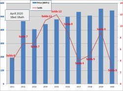 - Since 2003, average number of annual sales is six, with six in 2017, fourteen in 2018 and five in 2019. Despite the choppy number of sales, price action has been steady, $2M - $2.4M.