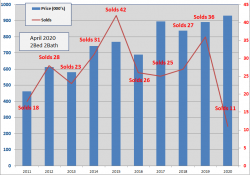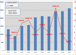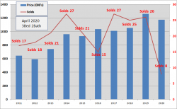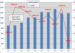 - The 2020 average Sold price of $613,000 is 9% above 2019 which at $560K was down 29% from 2018. The $613K is 84% above the 2011 low.