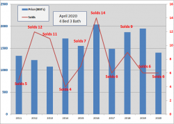 - Two, 4Bed/4Bath homes have sold in the Old Town area thru 4/30/2020. Average number of Days to sell is 28 days. Five homes sold in 2019 at an average days on market of 52 days.