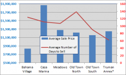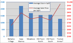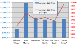 For 2020, 18 homes sold in Bahama Village for the year. (Year end 2019 had 21 sales) These 18 sales had an average sold price of $835K (Year end 2019 was $857K) at an average of $661 per square foot (Year end 2019 was $643 per square foot). There are some excellent bargains in the Bahama Village neighborhood. Please see this virtual tour or Zillow of 914 Williams Alley in Bahama Village.