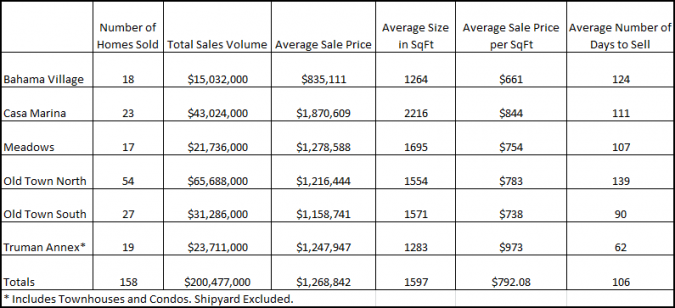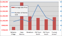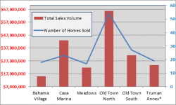 Old Town - North is the original Old Town, Key West. For many people this is the most desirable neighborhood in Key West; hence, it leads all neighborhoods in sales with 54 and total sales volume of $65.7M (Year end 2019 volume was $72M).