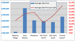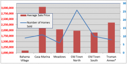 For the 1st Half 2024, nine homes have sold in Bahama Village at an average sold price of $1.1M and an average of $1163 per square foot. Bargains are rapidly disappearing in the Bahama Village. (All 2023, Bahama Village had 12 sales at an average sold price of $1.59M).