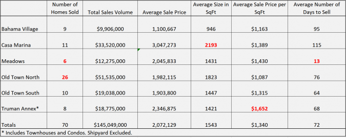 Old Town - North is the original Old Town, Key West. For many people this is the most desirable neighborhood in Key West; hence, it leads all neighborhoods with 26 sales at an average sold price of $1.98M. (All 2023 had 43 sales and an average sold price of $2.1M).