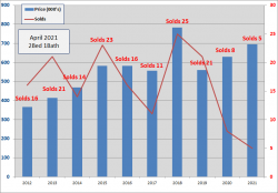 - The 2021 sales price per sqft of $953 is up 30% over 2020.