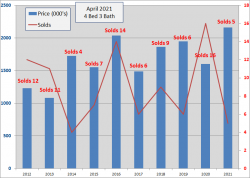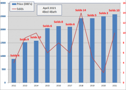 - The 2021 average sale price of $685,000 is up 28% from 2020 and 251% above the 2011 low. (One of the six sales was for $1.3M).